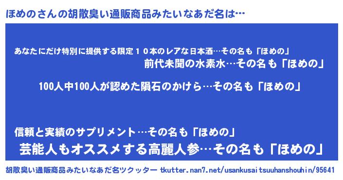 | ヘコむあだ名 | 『ほめの(遠い目)』『ほめっちょ』 |