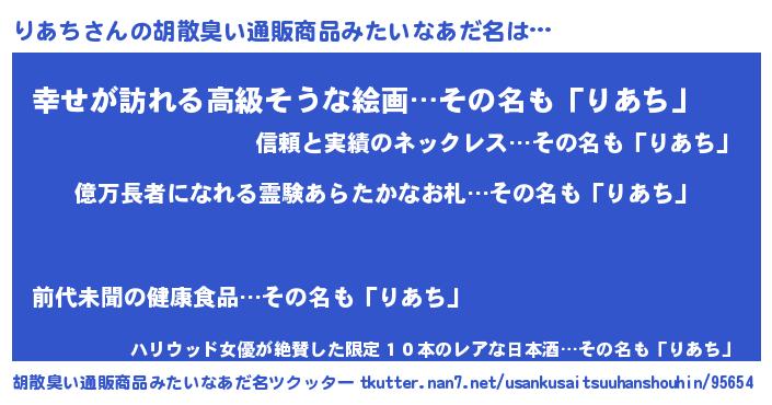 | 欧米人風あだ名 | 『アンジェラ・りあち』『マイケルりあち』 |