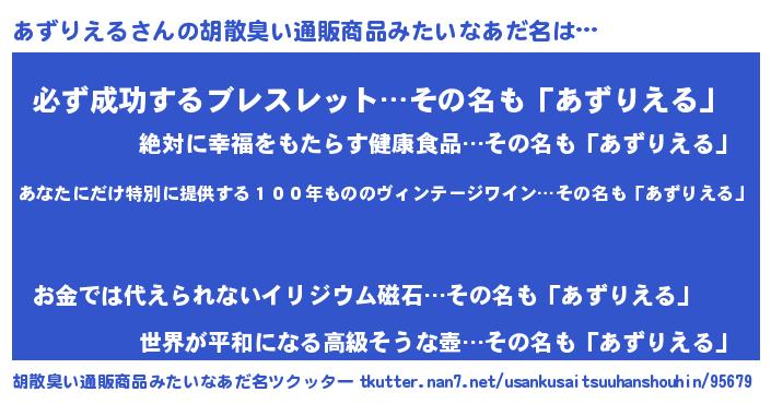 | 恥ずかしいあだ名 | 『プリティーあずりえる』『あずっちょ』 |