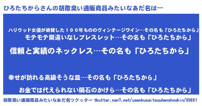 | 意味不明あだ名 | 『とにかく怪しいひろたちから』 |