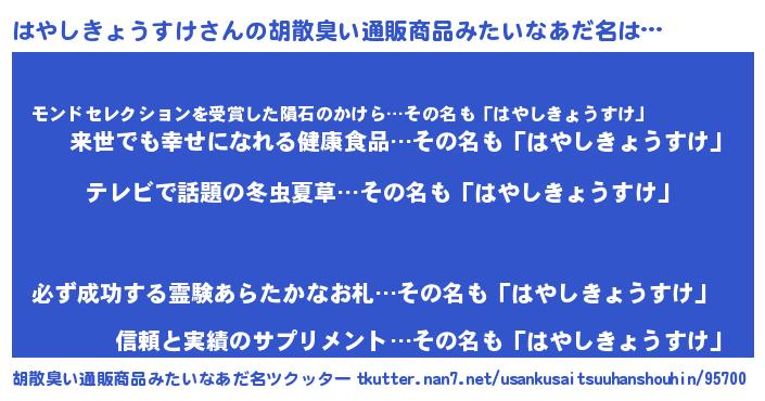 | ヘコむあだ名 | 『はやっちょ』『はやしきょうすけ(苦笑)』 |