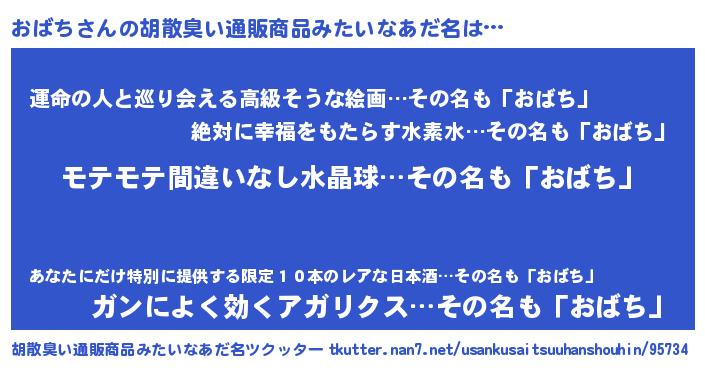 | 意味不明あだ名 | 『ペロリンおばち』『おばちフォーエバー』 |