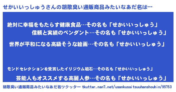 | 意味不明あだ名 | 『せかいいっしゅうフォーエバー』 |