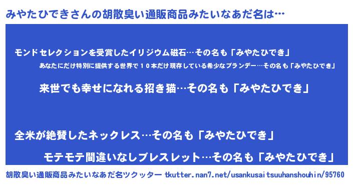 | 意味不明あだ名 | 『永久保存みやたひでき』 |
