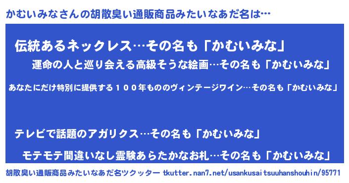 | 恥ずかしいあだ名 | 『カムリンリン』『プリティーかむいみな』 |