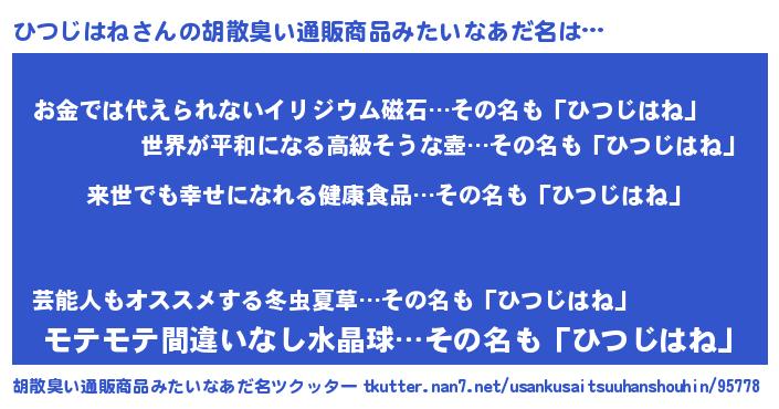 | ヘコむあだ名 | 『ひつじはね(爆)』『ひつにゅー』 |