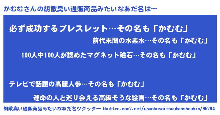 | ヒーロー風カッコイイあだ名 | 『正義の使者かむむ』『スーパーカムム』 |
