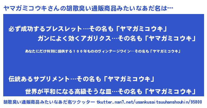 | 欧米人風あだ名 | 『トリンドルヤマガミコウキ』 |