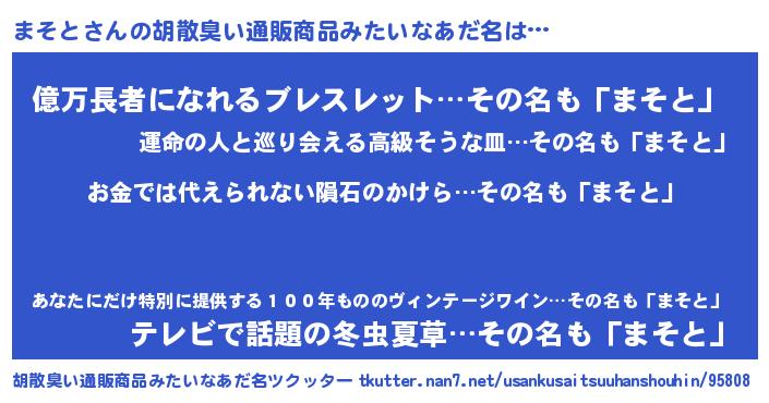 | ヒーロー風カッコイイあだ名 | 『慈愛の使者まそと』『スーパーマソト』 |