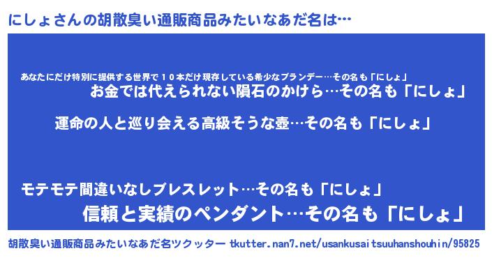 | ヘコむあだ名 | 『酢こんぶ』『にしを』『にしょ(笑)』 |
