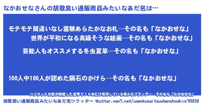 | ヘコむあだ名 | 『なかっふぃ~』『なまこ酢』 |
