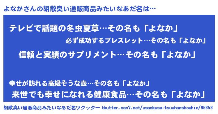 | 意味不明あだ名 | 『とにかく怪しいよなか』『自称よなか』 |