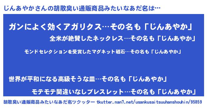 | ヘコむあだ名 | 『じんにー』『じんっ子』『牛乳』 |
