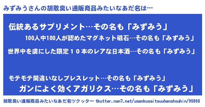 | 意味不明あだ名 | 『住所不定無職みずみう(40歳)』 |