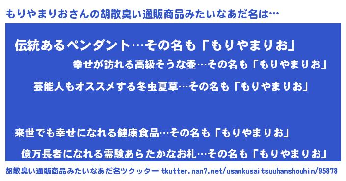 | 意味不明あだ名 | 『自称もりやまりお』 |