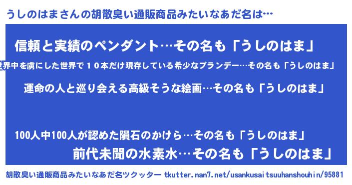 | ヘコむあだ名 | 『酢こんぶ』『うしを』『うしもー』 |