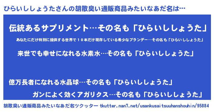 | ヒーロー風カッコイイあだ名 | 『ネオヒライシショウタ』『幻影騎士ヒラ』 |