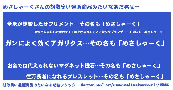 | 意味不明あだ名 | 『自称めさしゃーく』 |