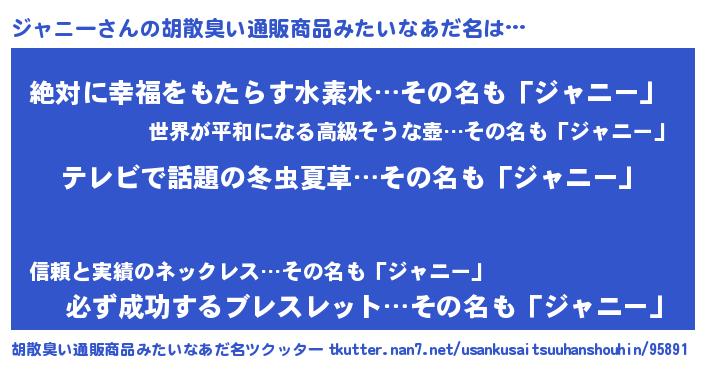 | 意味不明あだ名 | 『自称ジャニー』『永久保存ジャニー』 |
