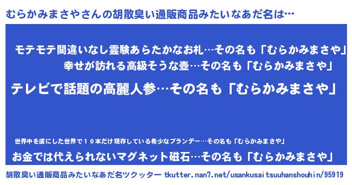| 意味不明あだ名 | 『自称むらかみまさや』 |