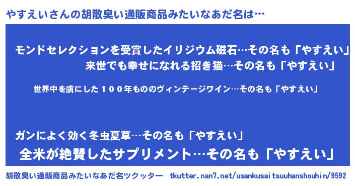 | ヒーロー風カッコイイあだ名 | 『仮面ヤスダー』『天空の使者やすえい』 |
