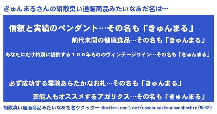 | 意味不明あだ名 | 『住所不定無職きゅんまる(8歳)』 |