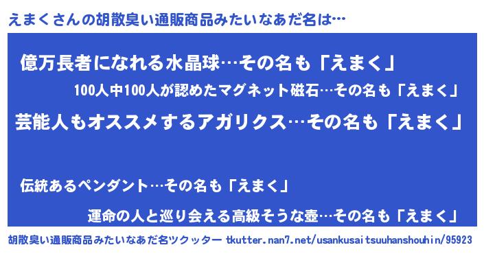 | 女子向けラノベタイトル風あだ名 | 『えまくの玉の輿計画!』『闇のえまく』 |