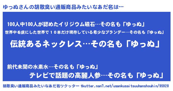 | ヘコむあだ名 | 『ゆっっ子』『ゆっぬ(小並感)』 |