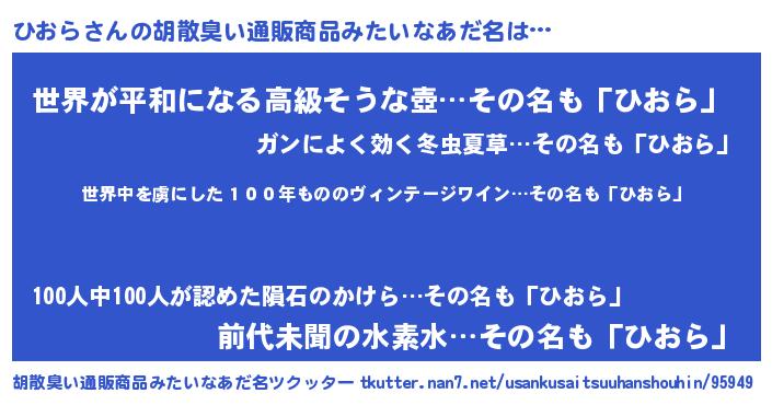 | ヘコむあだ名 | 『なまこ酢』『ひおら(笑)』 |