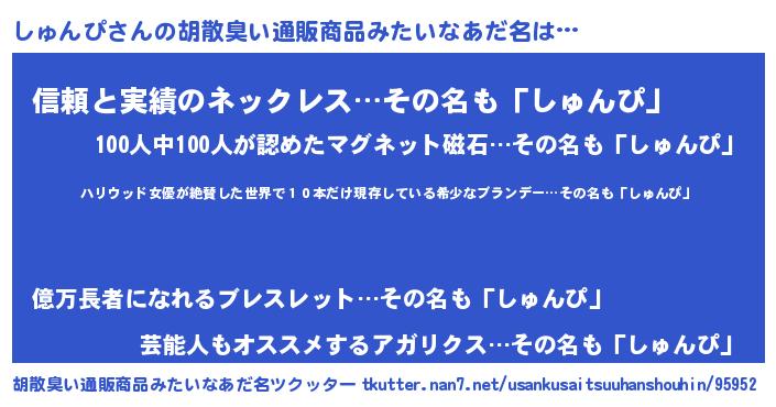 | 意味不明あだ名 | 『住所不定無職しゅんぴ(91歳)』 |