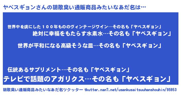 | ヒーロー風カッコイイあだ名 | 『ウルトラヤベスギョンマン』 |