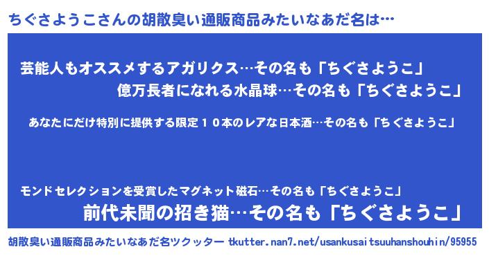 | 意味不明あだ名 | 『住所不定無職ちぐさようこ(68歳)』 |