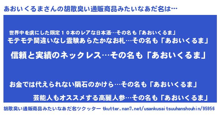 | 意味不明あだ名 | 『とにかく怪しいあおいくるま』 |