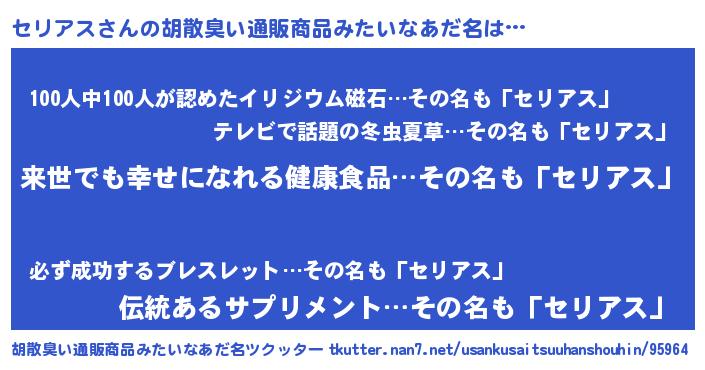 | 意味不明あだ名 | 『永久保存セリアス』『自称セリアス』 |