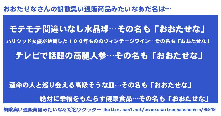 | ヘコむあだ名 | 『おおにー』『おおたせな(笑)』 |