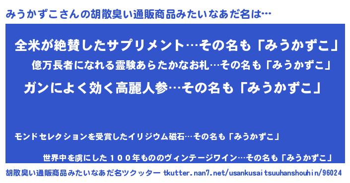 | 女子向けラノベタイトル風あだ名 | 『みうかずこなんてお断りですっ。』 |