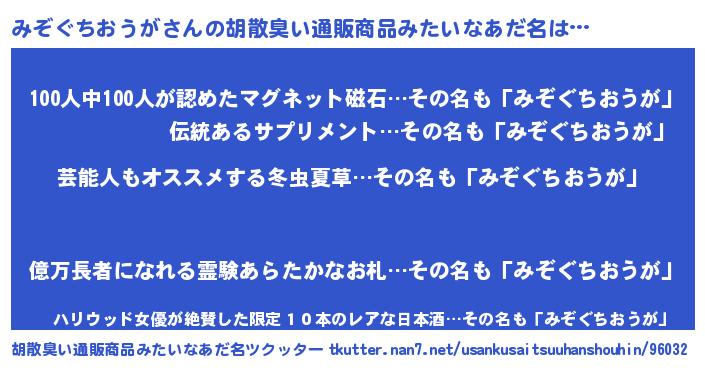 | 意味不明あだ名 | 『自称みぞぐちおうが』 |