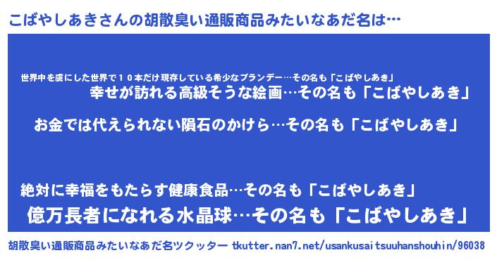 | 意味不明あだ名 | 『眠気覚ましガムこばやしあき味』 |