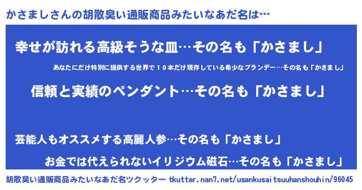 | 男性向けラノベタイトル風あだ名 | 『緋弾のカサマシ』 |