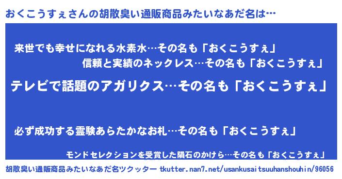 | 意味不明あだ名 | 『自称おくこうすぇ』 |