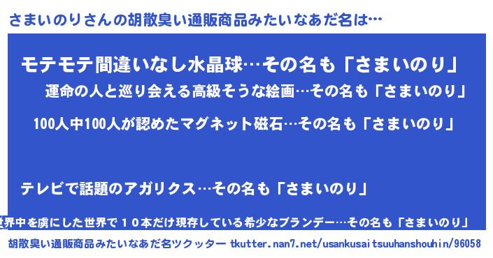 | ヘコむあだ名 | 『さまふぇ~』『牛乳』『さまぷりん』 |