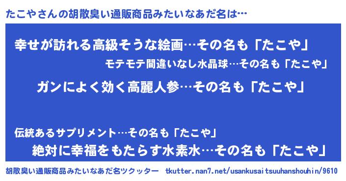 | ヒーロー風カッコイイあだ名 | 『超時空戦士タコヤ』『ネオタコヤ』 |