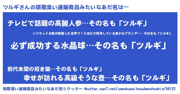 | ヘコむあだ名 | 『ツルもー』『つくし』『ツルギ(笑)』 |