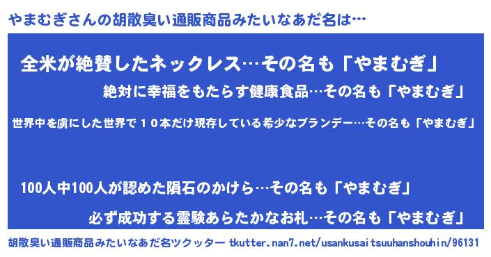 | 意味不明あだ名 | 『住所不定無職やまむぎ(86歳)』 |