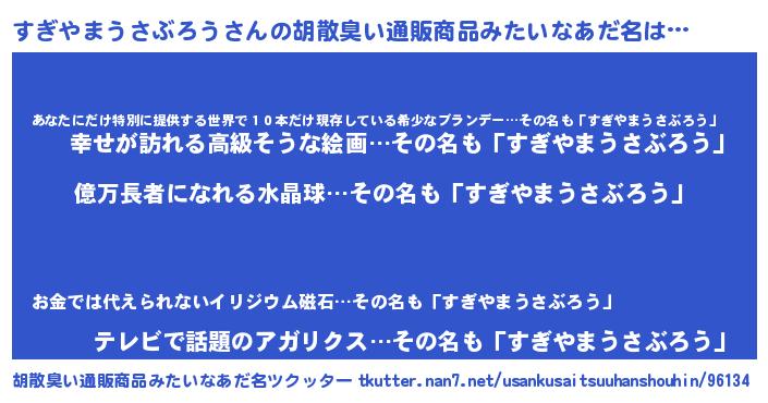 | 男性向けラノベタイトル風あだ名 | 『スギヤマウサブロウアートオンライン』 |