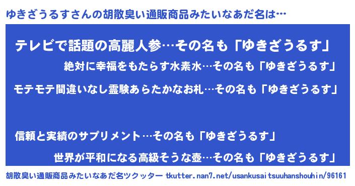| ヘコむあだ名 | 『ゆきもー』『なまこ酢』『ゆきを』 |
