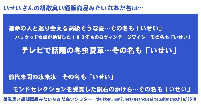 | 意味不明あだ名 | 『自称いせい』『いせいフォーエバー』 |