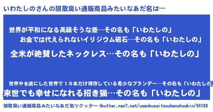 | 欧米人風あだ名 | 『ウサインいわたしの』 |