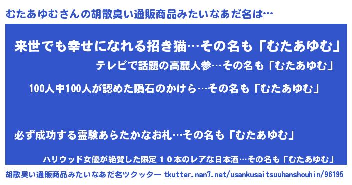 | ヘコむあだ名 | 『むたあゆむ(震え声)』『むたふぇ~』 |