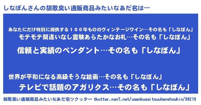 | 意味不明あだ名 | 『とにかく怪しいしなぼん』 |